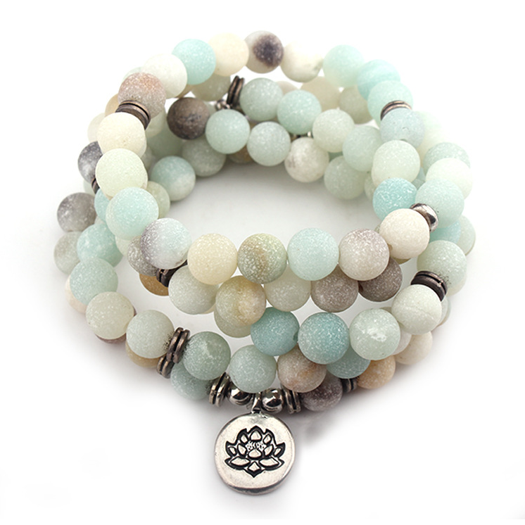 Handmade Amazonite Natural 108 Mala Prayer Meditation Yoga Bead Bracelet or Necklace