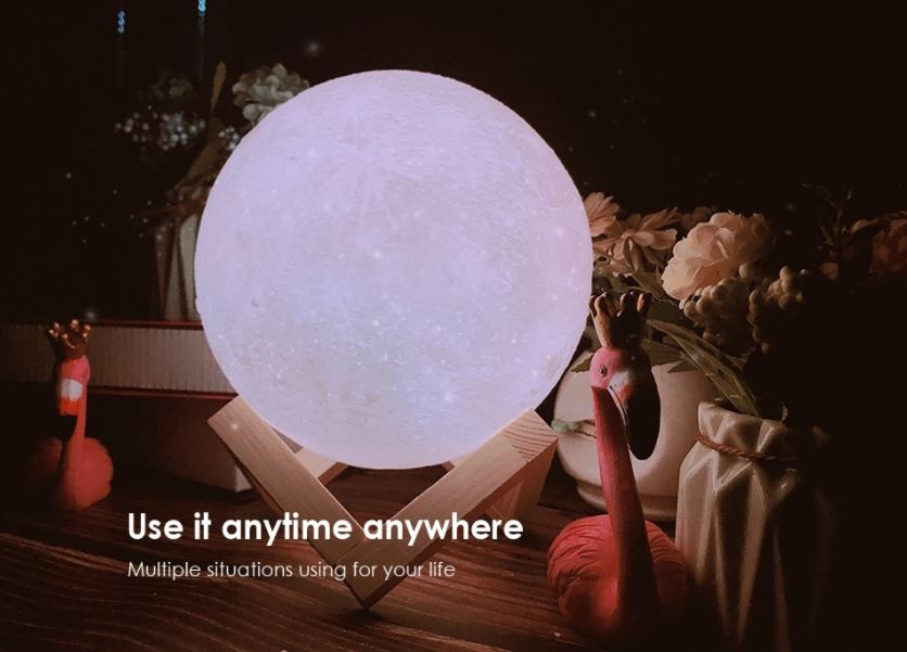 1. Touch the metal ring at the bottom of the moonlight to turn the light on/off and change the color from white to yellow.